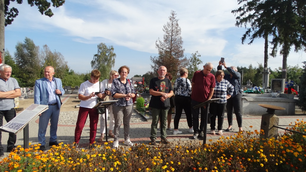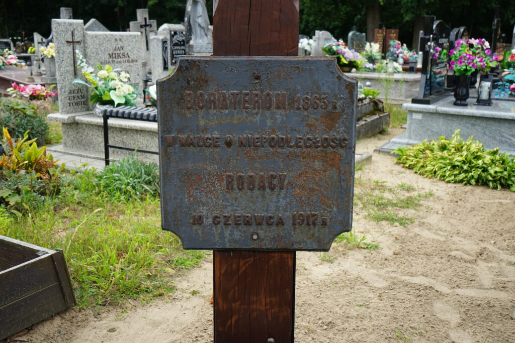 Tabliczka upamiętniająca powstańców styczniowych, mogiła w Skrwilnie na cmentarzu rzymskokatolickim (2024), fot. Michał Wiśniewski