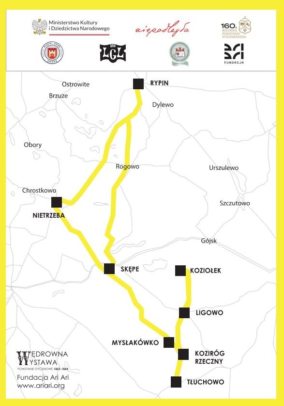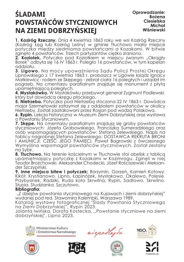 Spacerownik: Powstanie Styczniowe na Kujawach i Ziemi Dobrzyńskiej zrealizowaliśmy w ramach projektu „Wędrowne wystawy: Powstanie Styczniowe 1863-1864”, dofinansowanego o ze środków Biura „Niepodległa” w ramach Programu Dotacyjnego „Powstanie Styczniowe 1863-1864”.
